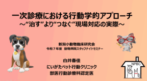 🎤【開催報告】新小研主催「動物病院スタッフナイトセミナー」で講師を務めました(2025.11.13) 2025年11月13日、にいがたペット行動クリニック院長の白井春佳が、新潟小動物臨床研究会(新小研)主 […]